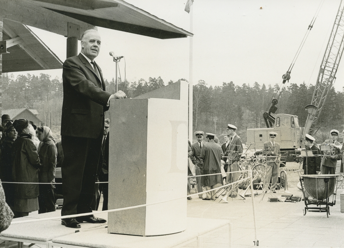 Exteriörbild. Invigning av det nybyggda Domus den 24 april 1964, Gustavsbergs centrum.