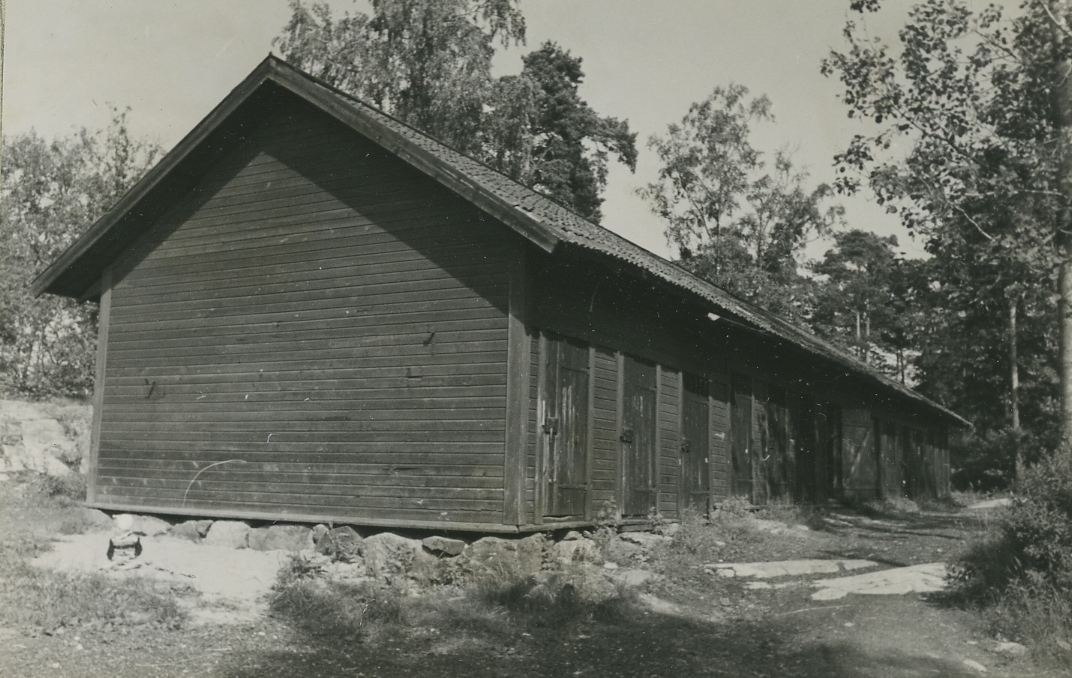 Exteriör. Vedbodar och avtäden för Skeviksgatan.