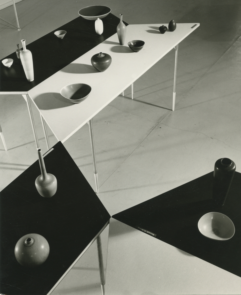 Interiör. Röhska museet, Göteborg. Utställning, unikt stengods av Berndt Friberg från Gustavsbergs Fabriker.