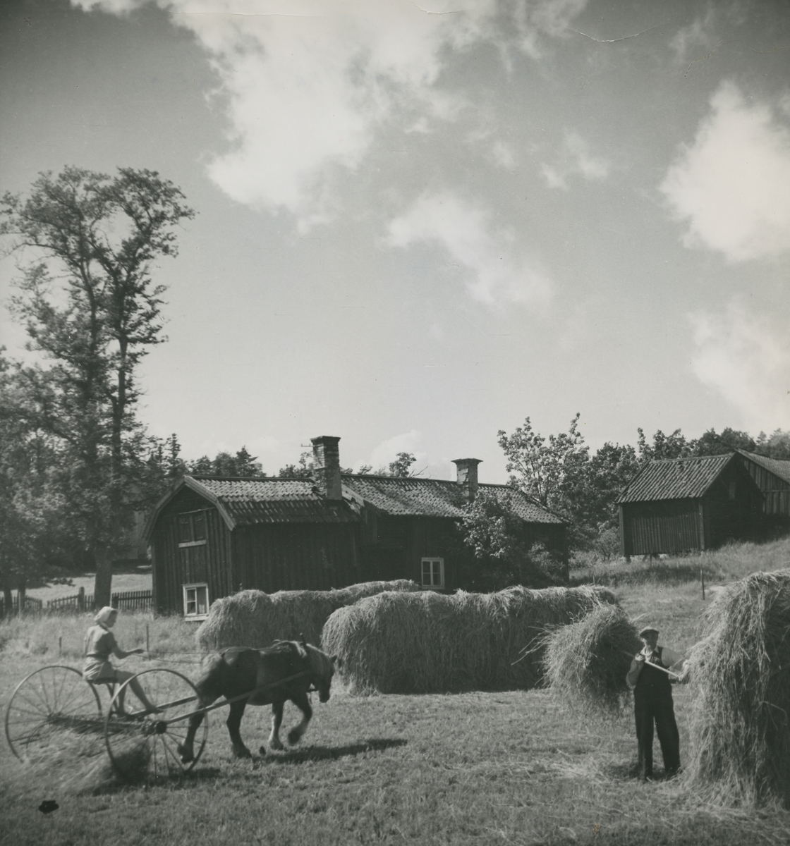 Exteriör. Skördearbete vid Torpet Östra Ekedal.