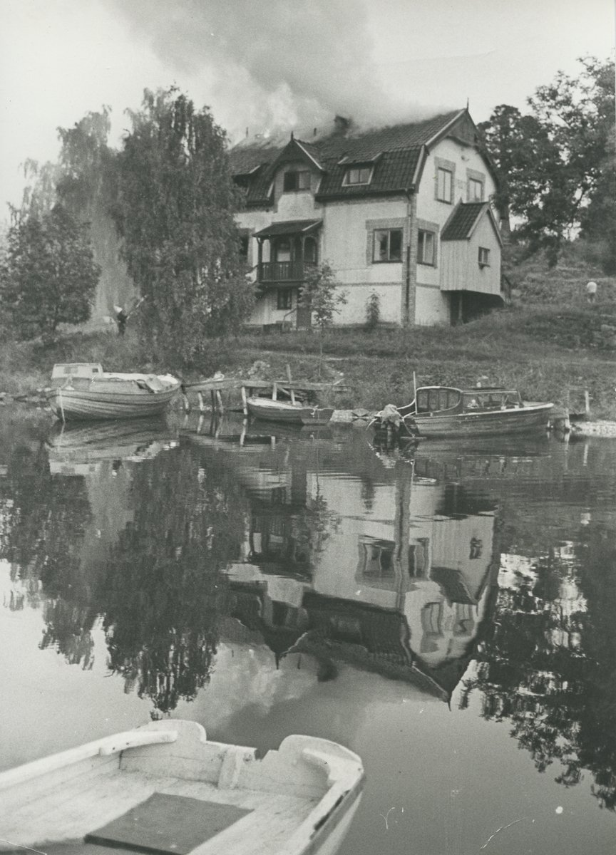 Exteriör. Strandvillan brinner.