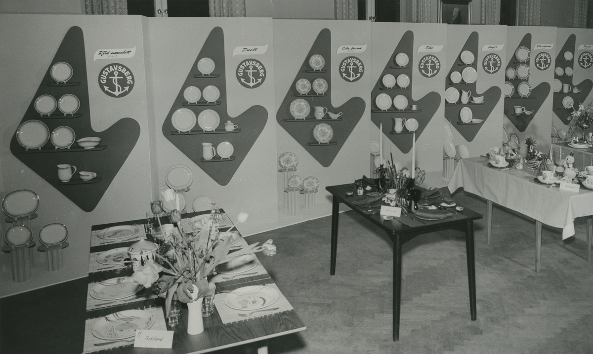 Interiörbild. Utställda föremål från Gustavsbergs Fabriker. Okänd plats.