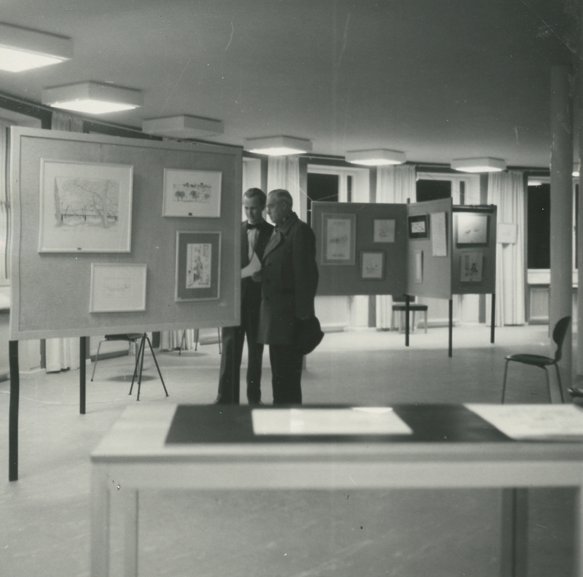Interiörbild. Kommunalhuset, Runda huset. Utställning, sannolikt av byggplanförslag.