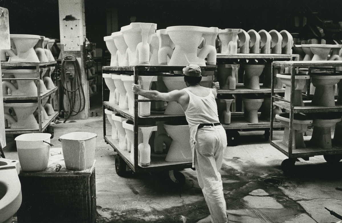 Interiör, Sanitetsporslinsfabriken. Forsling av sanitetsgods på sorteringen.