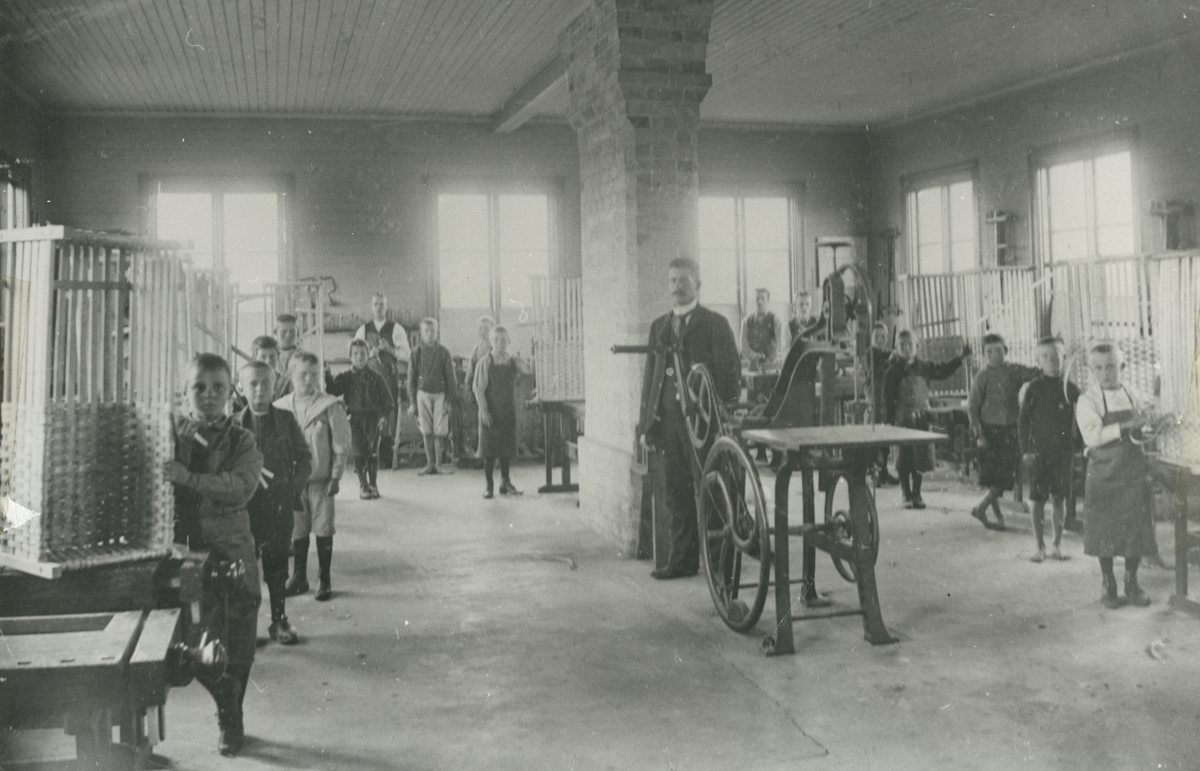 Interiör. Slöjdskolan. Den låg i korsningen av nuvarande Båtvägen och Rättarviken i Farsta.