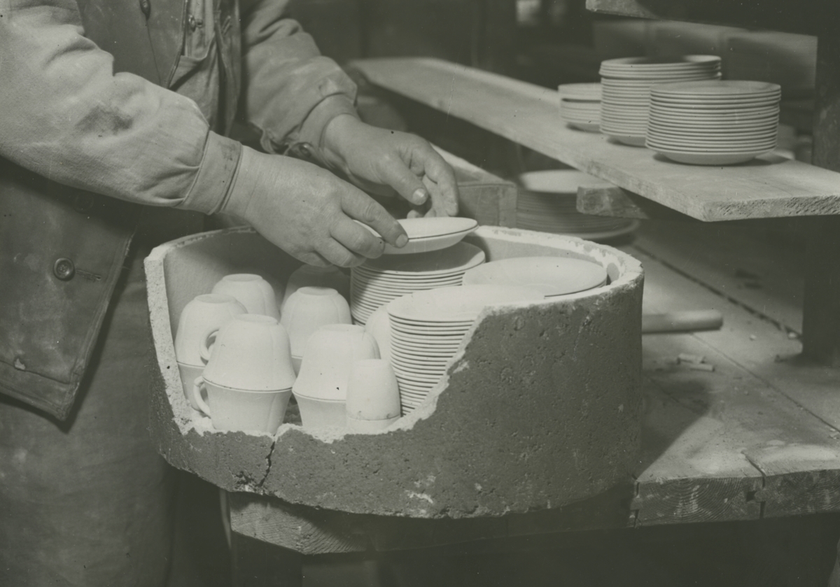 Porslin packas upp ur kapsel, s k koka, efter bränning i ugn.