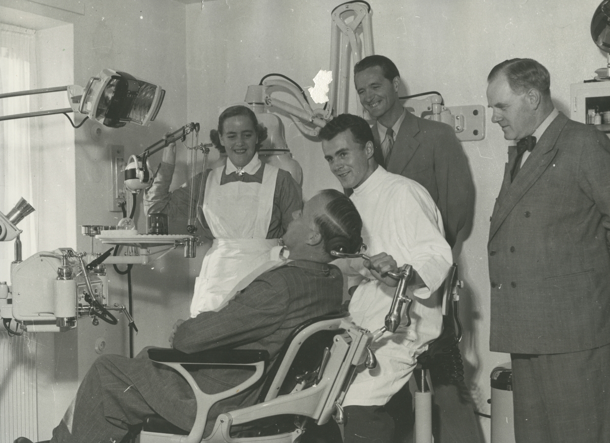 Personer: Tandläkare Brännström, Harry Pettersson i stolen, Kamrer Olofsson och Gunnar Andersson. Sköterska okänd