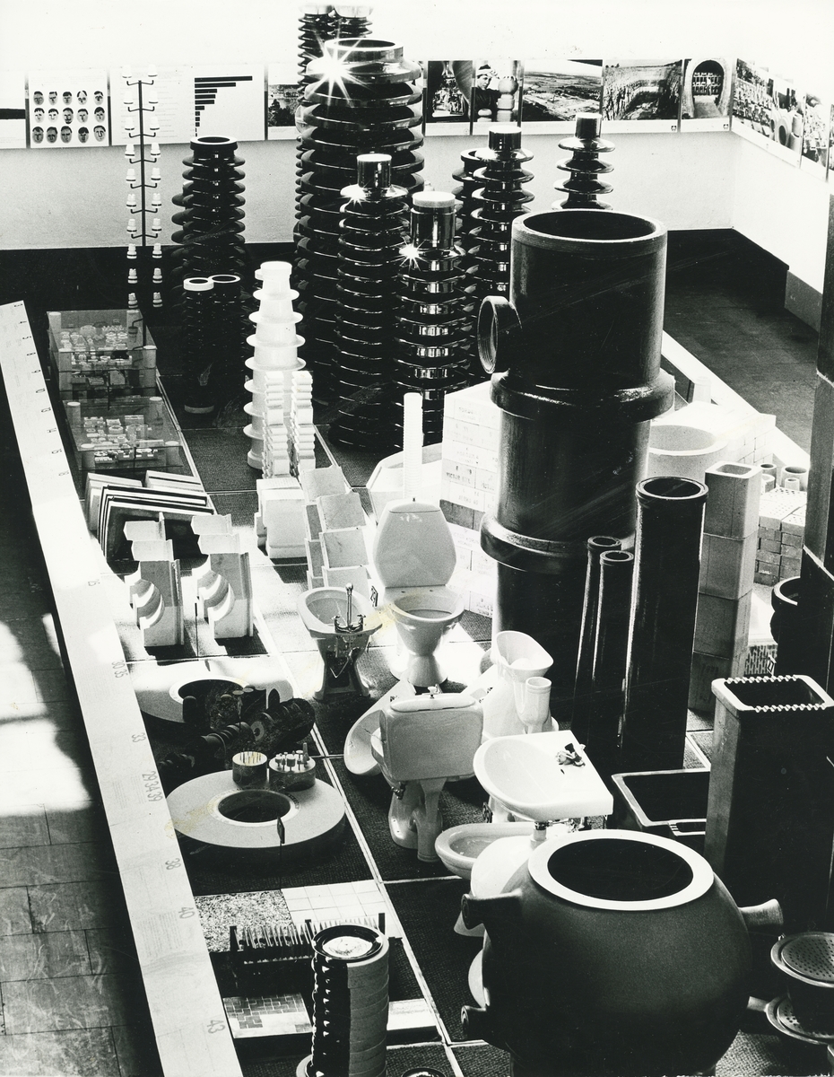 Interiörbild, utställning av keramiska produkter från Gustavsbergs Fabriker på Liljevalchs konsthall 1966 i Stockholm.