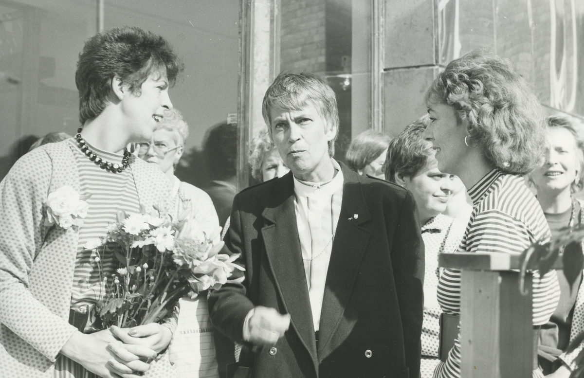 Exteriörbild. Invigning av Runda huset som kulturhus och bibliotek 1988.
