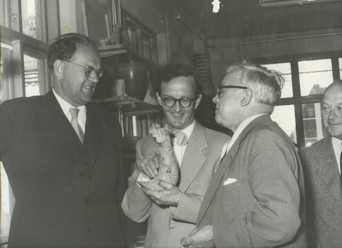 Personer: Tage Erlander, Stig Lindberg, okänd och Arthur Teglund.