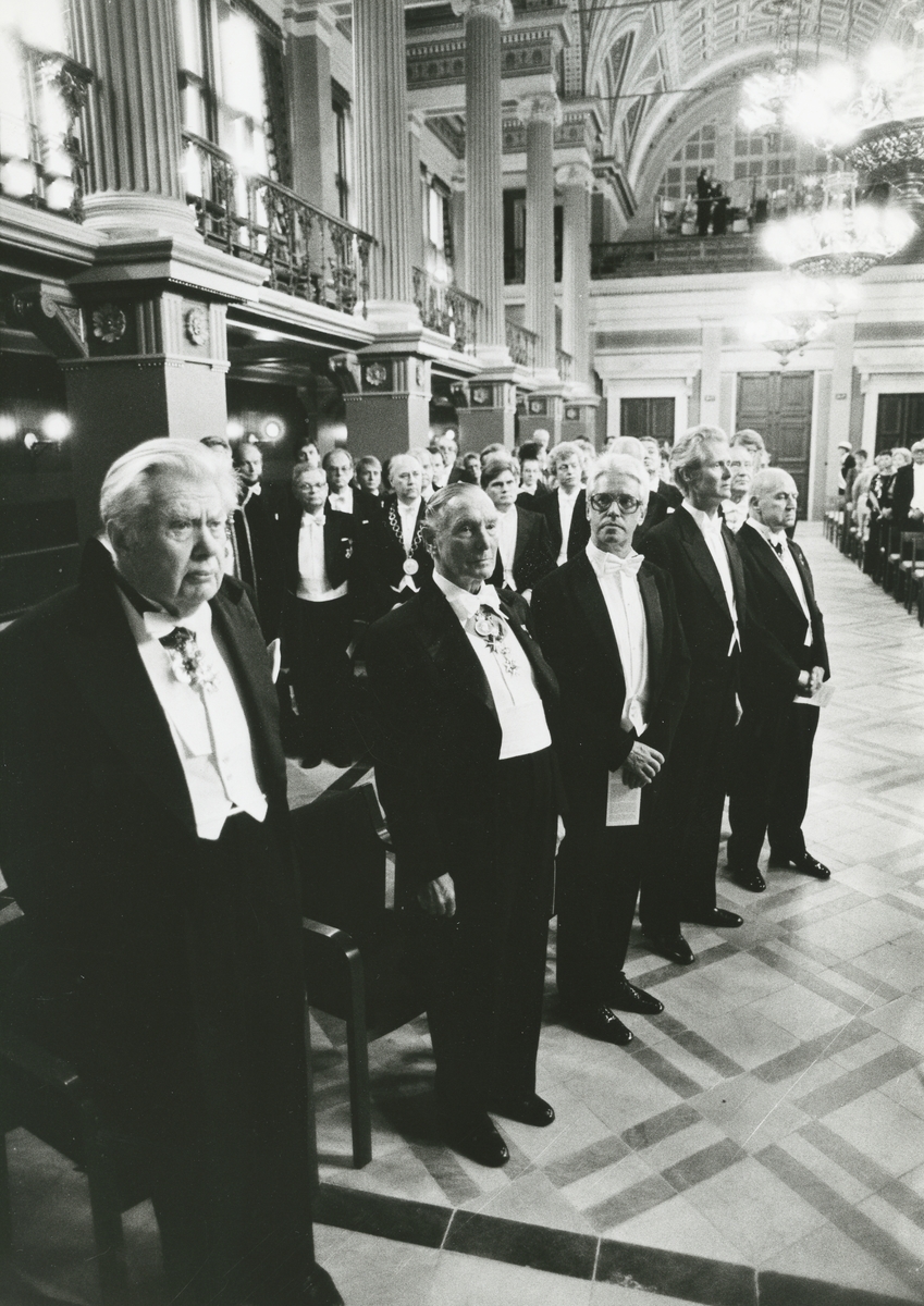 Promovering av hedersdoktorer vid Lunds tekniska fakultet 1986. I mitten Hjalmar Olson VD för Gustavsbergs Fabriker och t.v. vännen Sven Brohult.