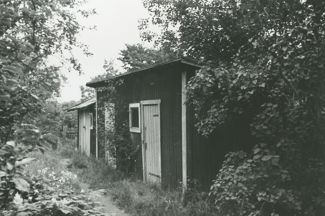 Exteriör. Vedbod och avträde för Stjärnan, byggt 1862, Gustavsberg.