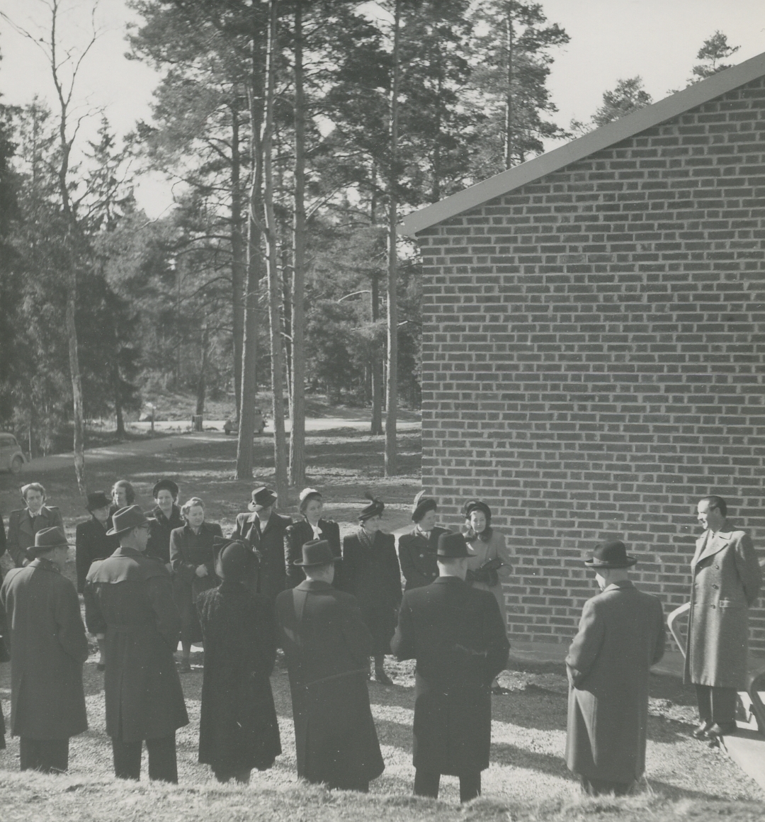 Exteriörbild. Invigning av Landstingets förlossningshem, mars 1949, beläget invid Skogsbo, Adress: <br>Är idag Hälsans Hus.