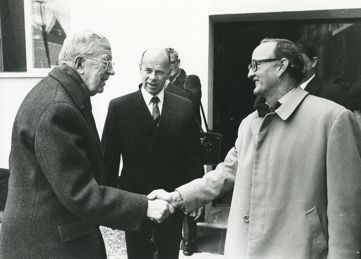 Personer: Kung Gustav VI Adolf, Stig Lindberg och i mitten VD Bo Broms