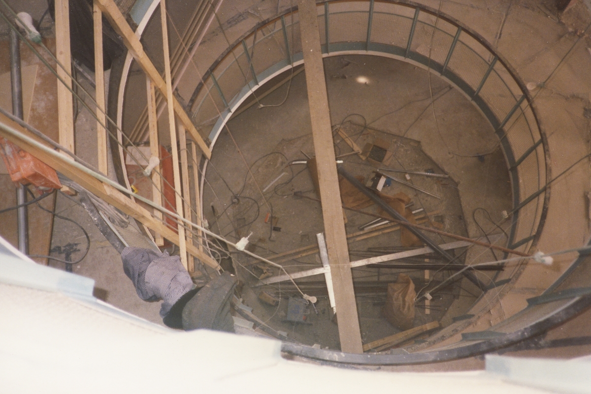 Interiörbild. Runda huset. Ombyggnation, inför det nya nyttjandet av huset som kulturhus och bibliotek.
