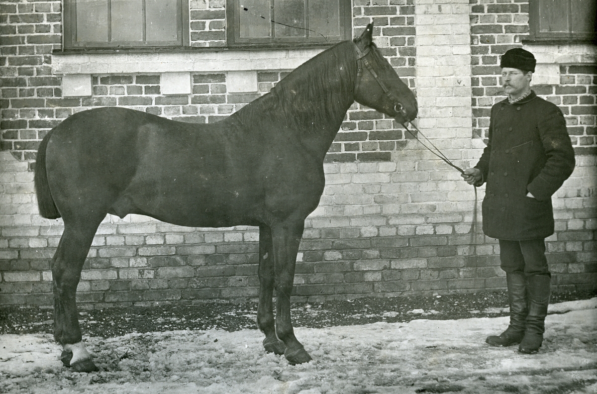 Kusken Karlsson och häst framför stallet, detta stod färdigt 1888 och inrymde både fabrikens och lantbrukets hästar. I samma byggnad finns idag Villroy & Bochs fabriksbutik (Svart på vitt, 2009-2010:8).