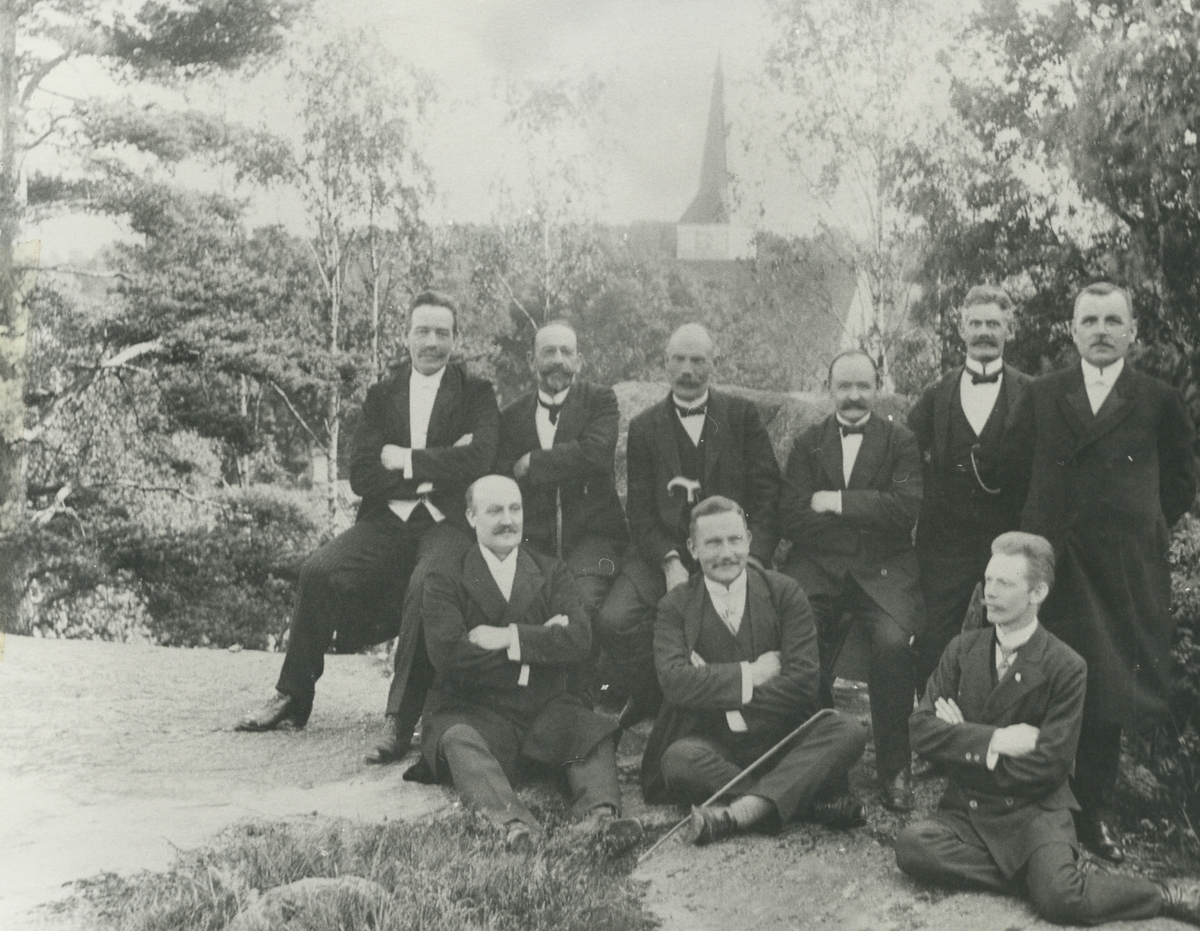 Personer: Övre raden: L V Johansson, F Hultman, Fritz Andersson, T H Fransson, Emil Steen, Ernfrid Hedblom<br>Nedre raden: C F Jarl, Carl Lindblom, Samuel Svensson
