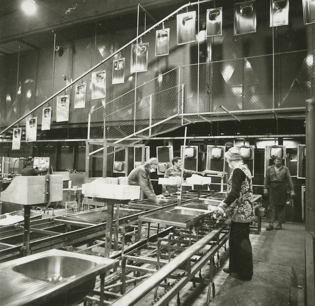 Interiör från fabriken för rostfria diskbänkar i Mölntorp.