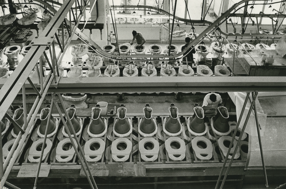 Interiör, Sanitetsporslinsfabriken. Gjutning av wc-stolar.