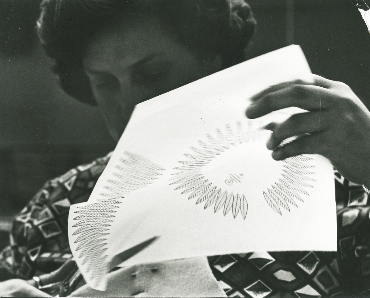 Detaljbild. Hushållsporslinsfabriken, dekorklippning.