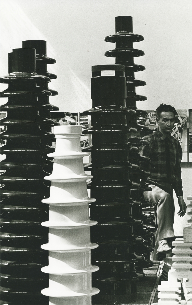 Detaljbild av föremål till utställningen Keramik på Liljevalchs 1966 där produkter från alla stora svenska keramiska industrier visades.