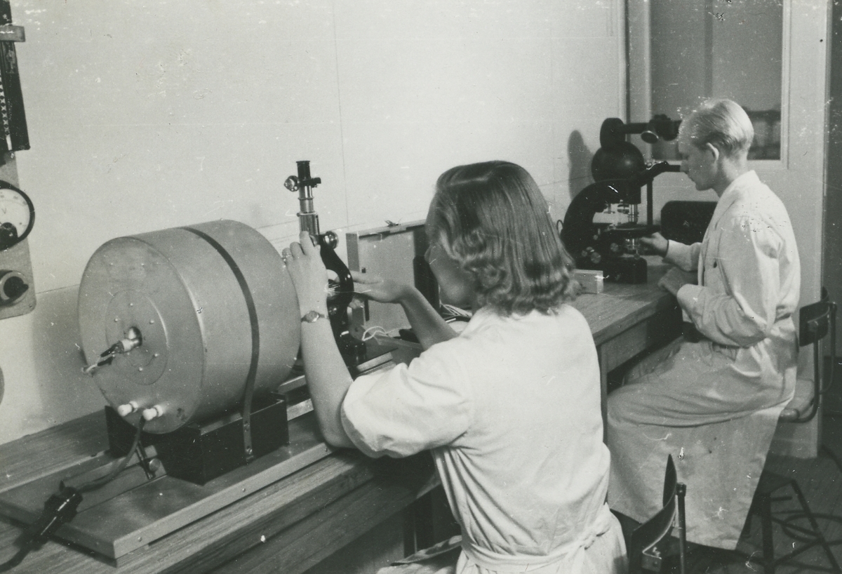 Interiör, Materiallaboratoriet. Testmaskiner för porslin och hållfasthet.