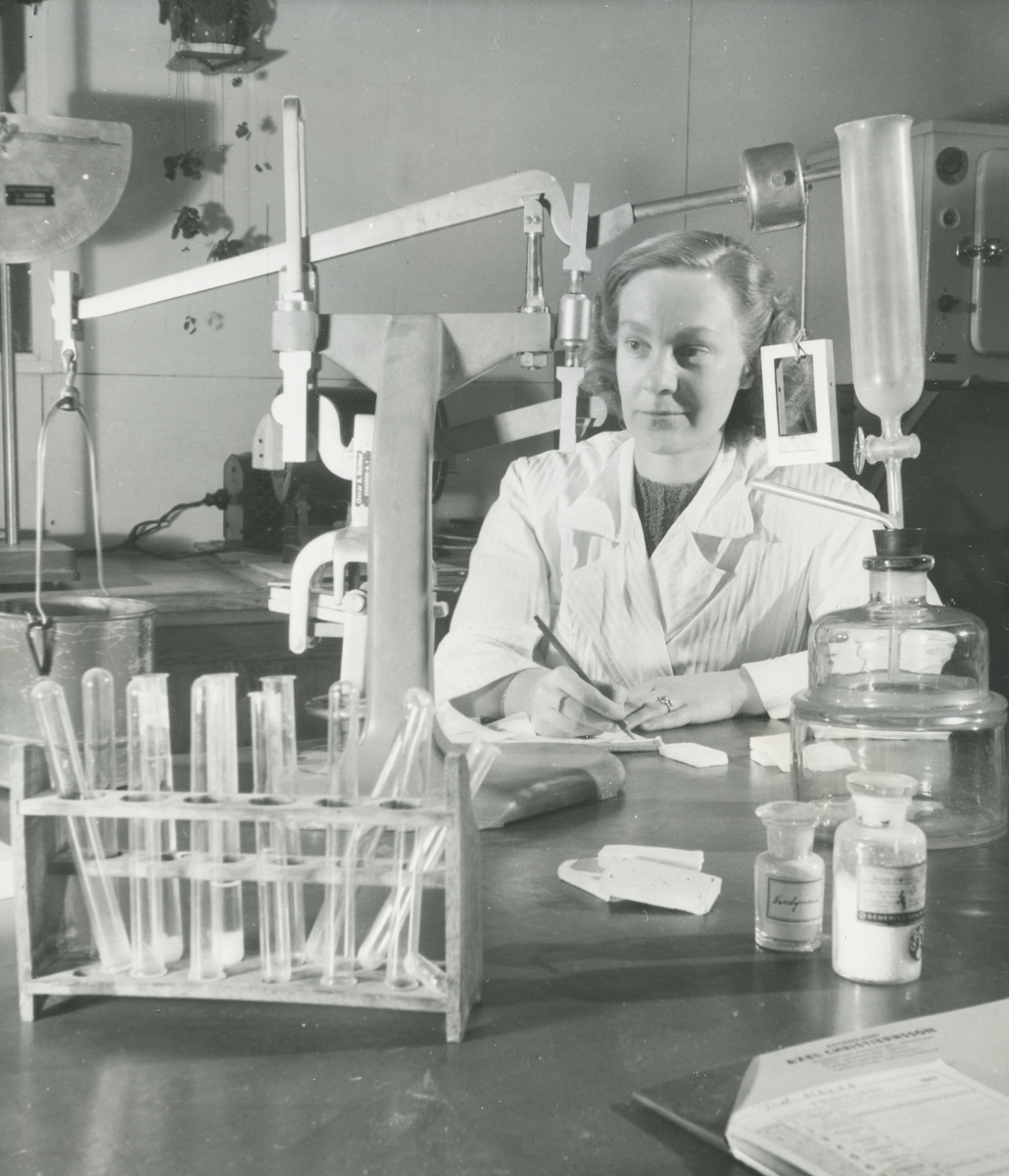 Titel: Interiör, Materiallaboratoriet. Utförande av materialtester. Personer: okänd