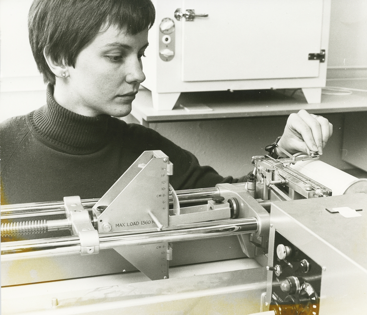 Interiör. Materiallaboratoriet. Utförande av materialtest.