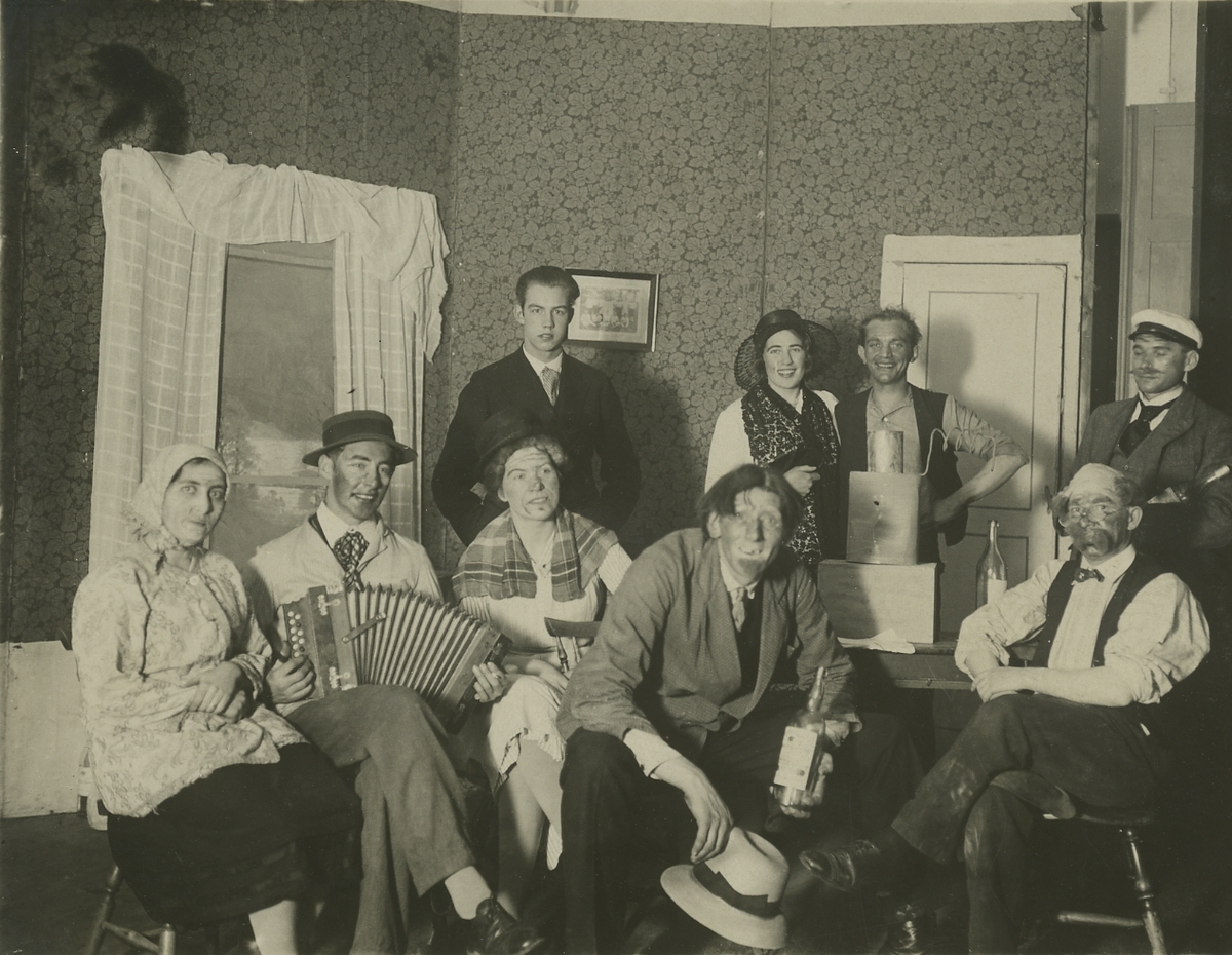 Personer: Stående: Erik Vadström, Astrid Fall, Harald Persvret, Oskar Karlsson<br>Sittande: Anna Hellqvist, Herbert Bergschöld, Thyra Sten, Gustav Möller, okänd