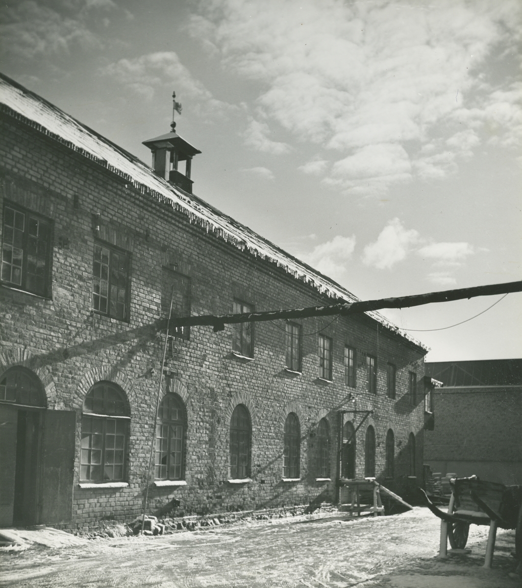 Exteriör. Slamhusgatan, Gamla slamhuset byggt 1859. Huset har ännu kvar vällingklockan och den drakformade vindflöjeln. Numera är fasaderna putsade och fönstrens rundbågiga krön igenmurade.