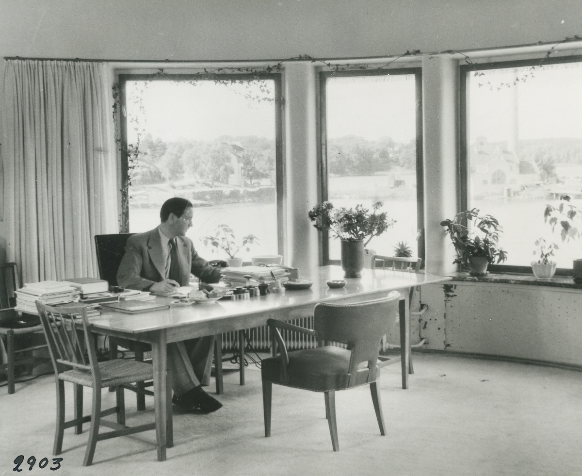 Interiörbild. Gustavsbergs Fabriker, Huvudkontoret med utsikt över Farstaviken.