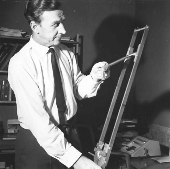Sixten Igelström med en skidskoslipningsapparat