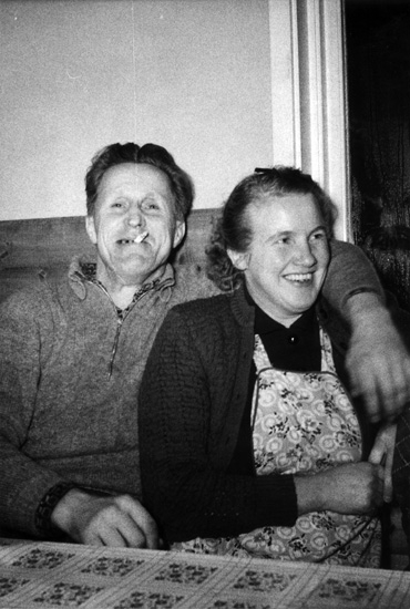 Fr v: timmerhuggare Edvin Axelsson, kocka Rut Olsson.