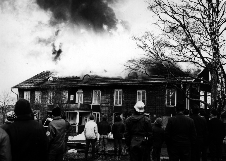 Gamla vårdhemmet, Västanvik, bränns ner under en brandövning.