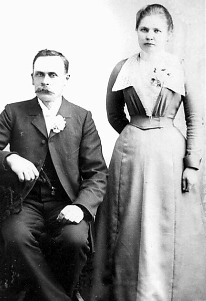 Brudgummen hette Nils Mattsson, härstammade från "Västhöjda", Lekvattnet. Bruden kallades Lill-Maja, bodde på Kronhalla. Hon emigrerade till Amerika.