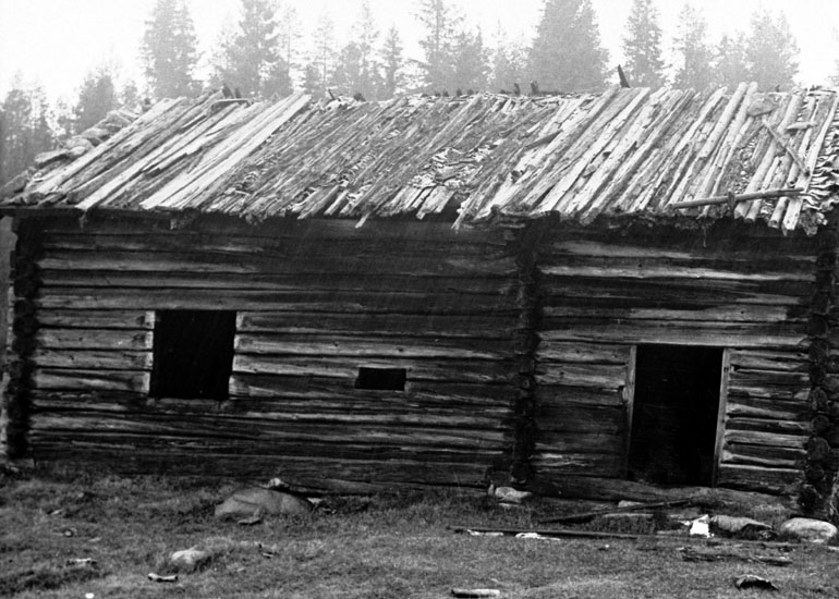 Rökstuga i Aspliden, Södra Finnskoga. Flyttades till Dalby Hembygdsgård