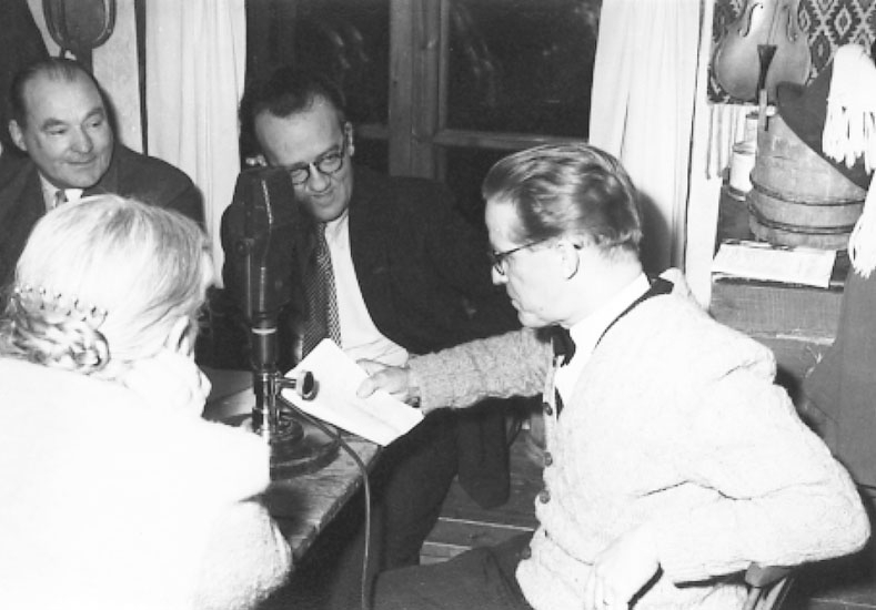 I förgrunden överlärare Joel Hedåsen, Gräsmark, läser ur Axel Frithiofsons produktion. Vidare synes Fryksdalsmora, fru Ida Nilsson, samt Per Martin Hamberg.