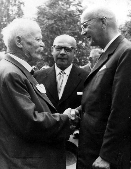 Fr v: "Nitaho-Jussi" Johannes Johansson, landshövding Eino Palovesi, president Uhro Kekkonen