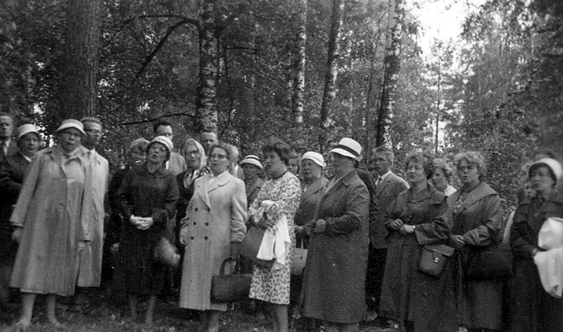 I mitten lektor Anne Leppänen, vid äldsta kyrkplatsen i Rautalampi.