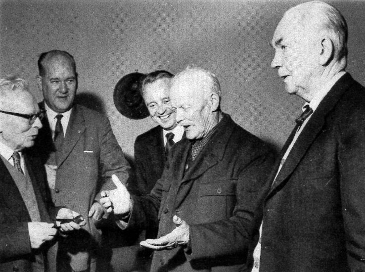Från vänster: Professor Lauri Kettunen, Bror Finneskog, Niittaho-Jussis Förenings sekr i Helsingfors Urho Inha, "Niittaho-Jussi" Johannes Johansson, Olov Olovsson.