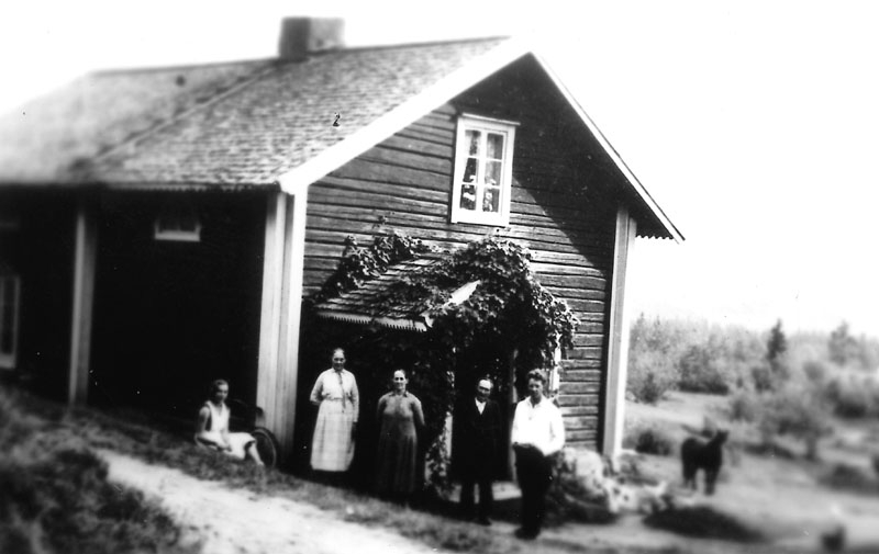 Fr.v: Karin Olsson, lärarinna Maja Olsson, Olivia Olsson, Henrik Olsson, skogsinstruktör Kalle Ohlsson.