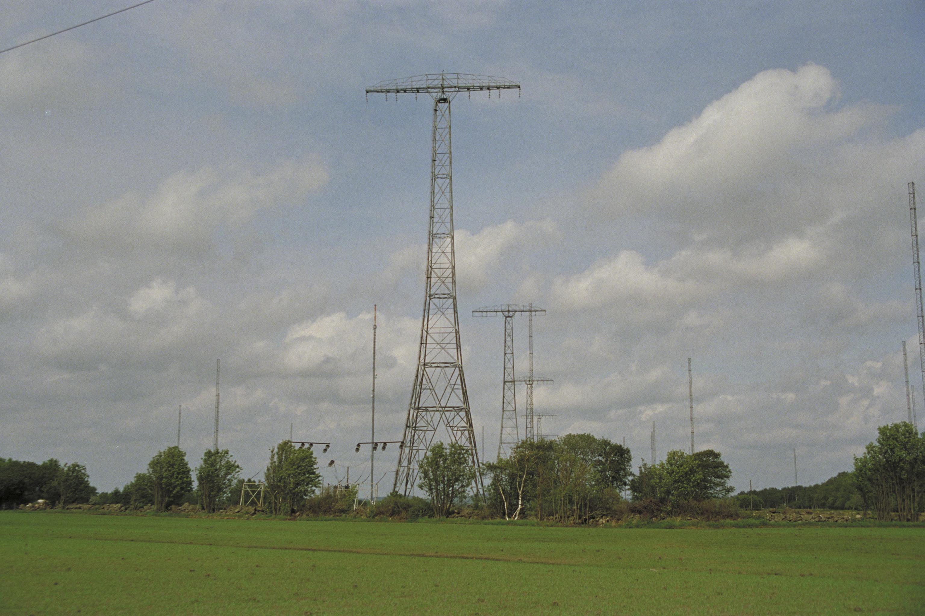 Multipelantenner med Grimetons radiostation i bakgrunden.