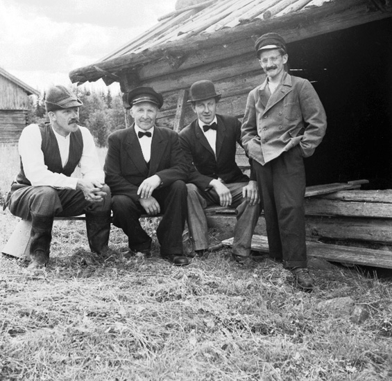 Inspelning av filmen "Ursula - flickan i Finnskogarna". Fr v: Hugo Olsson, Oskar Mattsson, Artur Johansson, Jens Olsen.