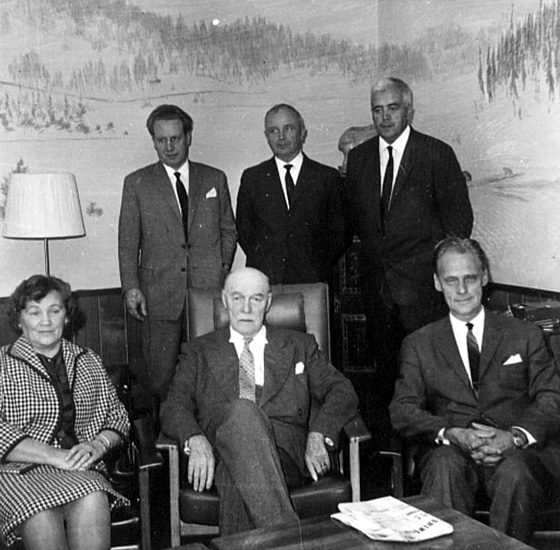 Niittaho-Jussi Sällskapets, Helsingfors styrelse: stående fr.v. direktör Pauli Laurila, jägmästare Urho Juha, kapten Harry Eld och längst fram t.h. föreningens ordf. docent Jarl Louhija. T.v. sittande Anna Gottlund, överste Axel W. Gottlund, Tavestehus (sonson till C.A Gottlund)