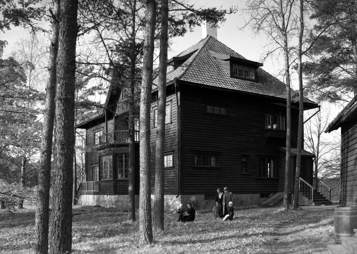 Villa Skogsbrynet vid västra kanten av Mariebergsskogen på en bild från 1948. Huset byggdes 1903 och dess förste ägare var den legendariske chefredaktören Mauritz Hellberg på Karlstads-Tidningen.