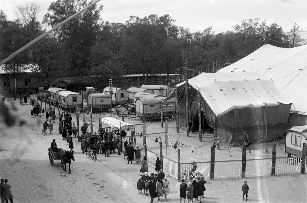 Bildsvit från Cirkus Strassburgers besök i Karlstad år 1929. Cirkusen är enligt expertisen den största som turnerat i Sverige.