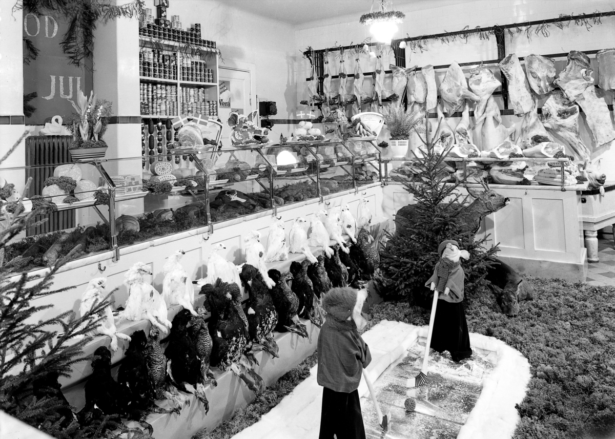 Julskyltning i Nymans charkuteriaffär på en bild tagen 1935.