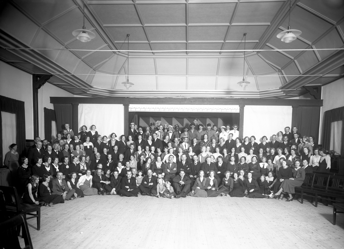 Interiör från IOGT:s lokal i Klara på en bild från 1930. Klara Ordenshus låg i hörnet av Södra Klaragatan och Malmtorgsgatan. Byggdes 1890 och monterades ner vid rivningen 1950 för att användas vid uppförandet av Råtorpskyrkan