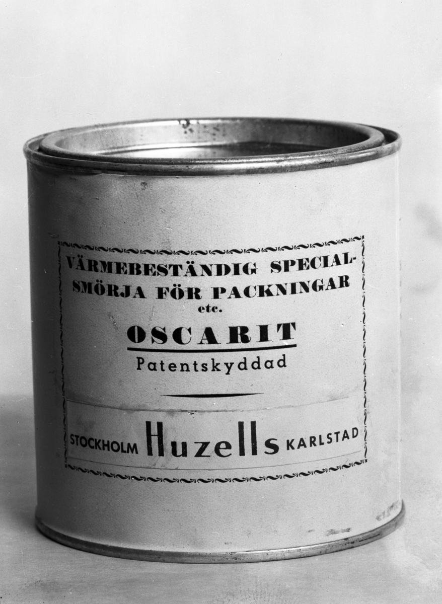 Oscarit. Burk med smörja. Aug. Huzells AB
