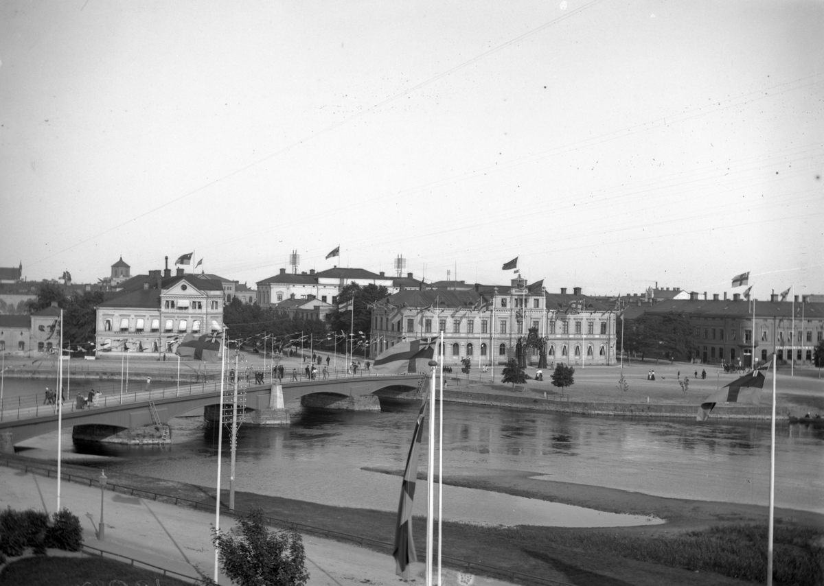 Bilden tagen i samband med invigningen av Värmlands Hushållningssällskaps 100-årsutställning år 1903. I bakgrunden till höger skymtar ett av Karlstads första 4-våningshus, byggt av C J Wennberg AB med adress Drottninggatan 9.